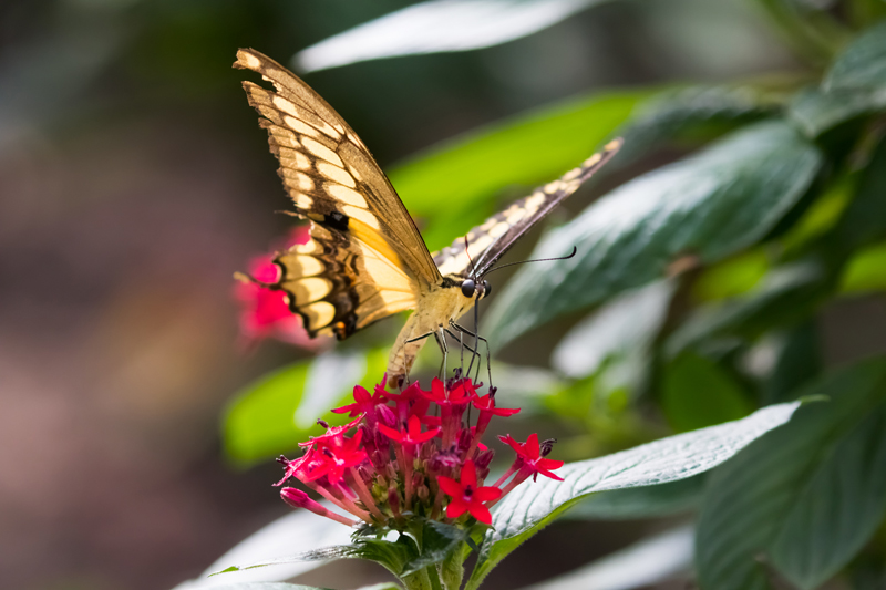 Wo Schmetterlinge sind gibt’s auch allerlei exotische Blumen und Zwergwachteln.