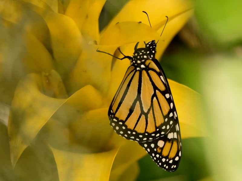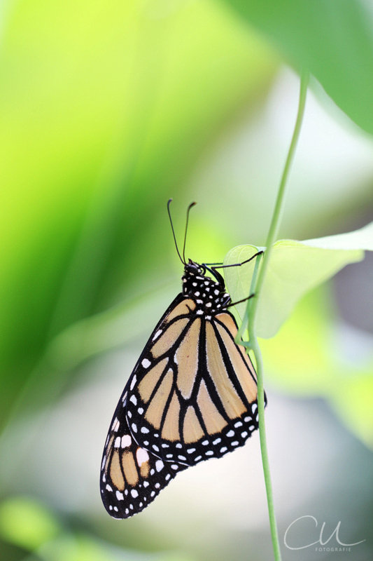 Monarchfalter – besonders beliebt weil sie hin und wieder ruhig sitzen bleiben – doch offensichtlich seltener ihre Flügel ausklappen.