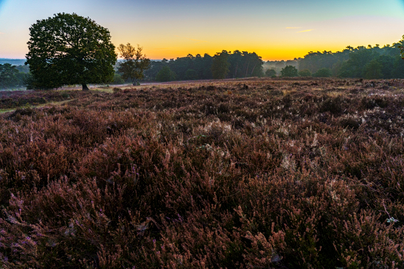 Sonntagmorgen, 4 Uhr. Der Wecker klingelt. Aufbruch zum Frühtau in der Wahner Heide. Wir sind die Ersten auf dem Wanderparkplatz, es ist ja auch noch stockfinster. Bei zwei Grad Außentemperatur stapfen wir durch die Dunkelheit; dann wird es langsam heller. Wir hätten uns etwas mehr Nebel gewünscht, aber der Raureif war auch schön!